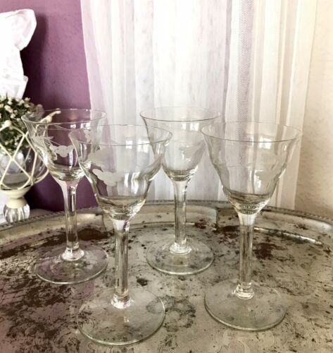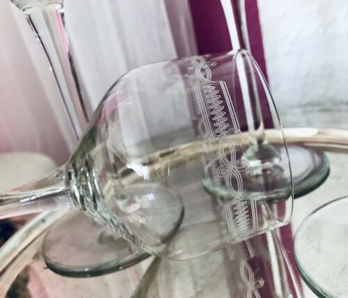 Antik 4x Weingläser Glas So Schön! guillochierte Borte Edel 18,5 cm hoch