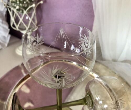 Antik 6x Art Déco Weinglas grüner Stängelstiel Weingläser geschliffene Bordüre