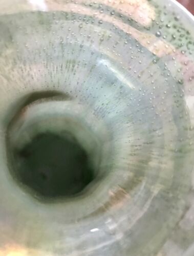 Antik ? wundervolle Glasvase Vase Glas Art Déco grün leicht irisierend Abriss