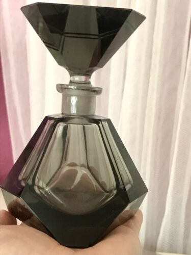 Antik Art Déco EDEL! Parfüm Glas Kristall Flasche Flakon grau Rauchglas So schön