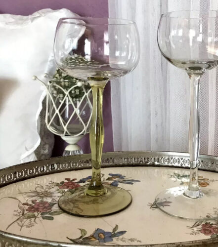 Antik 1898 Jugendstil Stengelglas gelbgrün P. Behrens Sammlerglas Weinglas