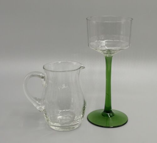 Antik 1x Jugendstil Stengelglas grün Stängelstiel Sammlerglas Weinglas optisch