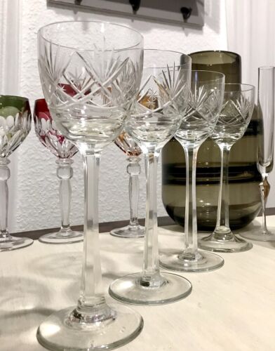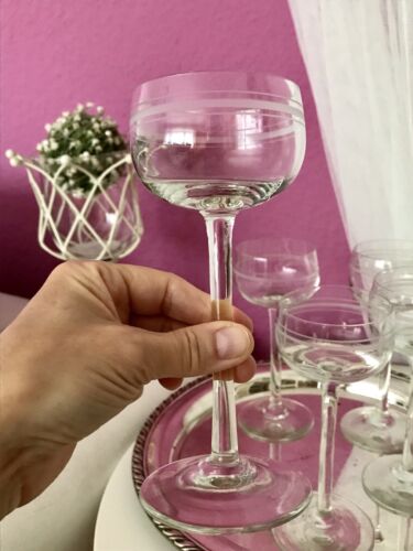 Antik 5 Art Déco Glas Weinglas Weingläser 3 geschl. Ränder EDEL