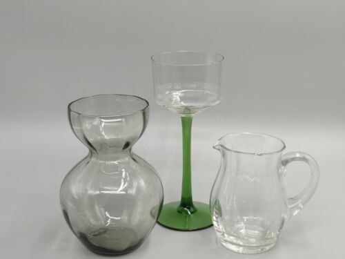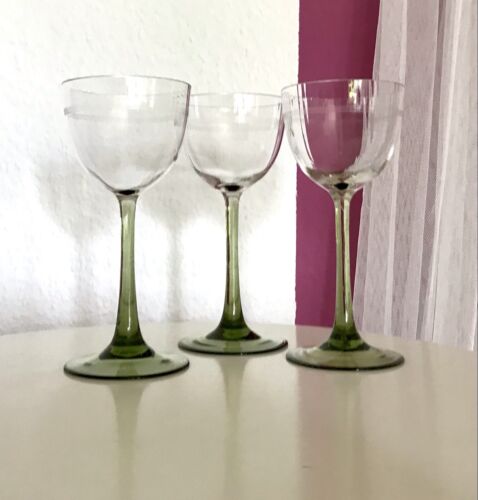 Antik 3x Art Déco Weinglas grüner Stängelstiel Weingläser optisch gerippt