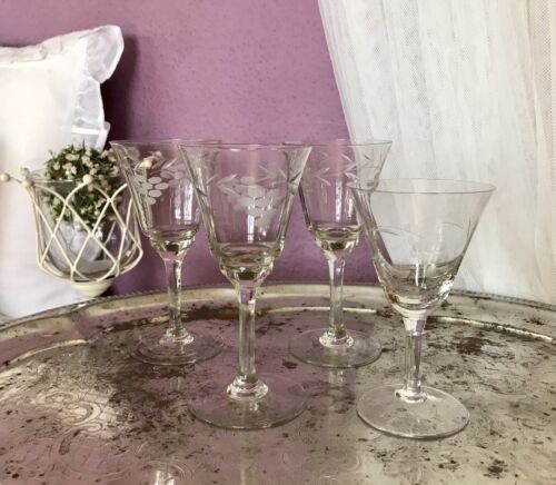 Antik 4x hochstielige Jugendstil Art Déco Weingläser Kristallglas EDEL Schliff