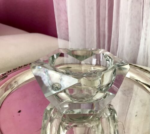 Antik Art Déco Aschenbecher Ascher wertig farblos Kristallglas Flächenschliff