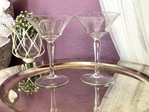 Antik 2x Art Déco Likörglas Likörschale Glas geschliffen Stängelstiel