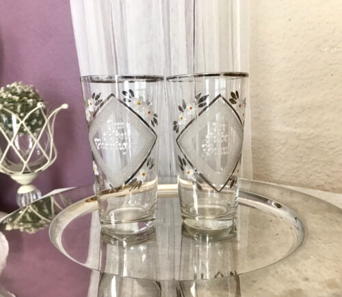 Antik 2 ~1900 Glas Fuß Becher Email-Malerei Silberbraut Silberbräutigam Schön