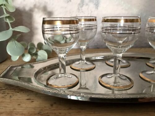 Antik 1900-20 6x Schnapsgläser Likör Glas Goldrand auf Fuß zartes Glas