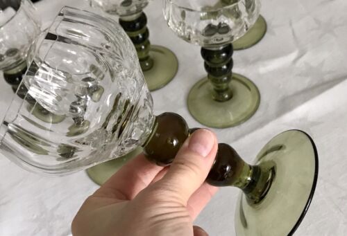 Antik 6x Jugendstil Stengelglas grün Stängelstiel Sammlerglas Weingläser optisch