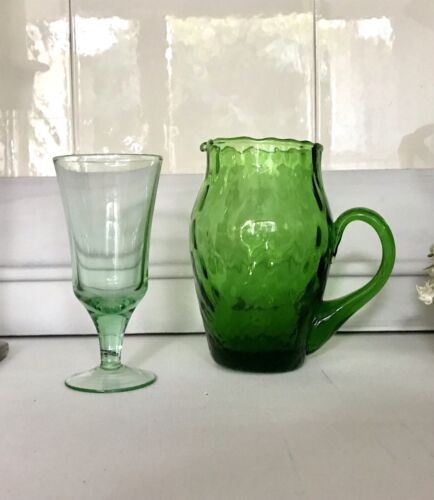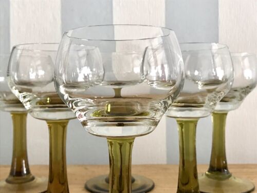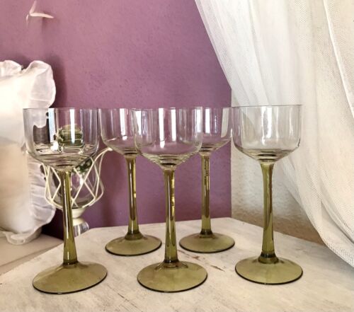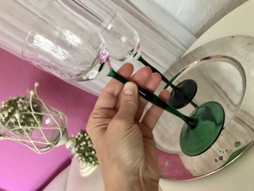 Antik 5x Jugendstil Stengelglas grün Stängelstiel Sammlerglas Weingläser optisch