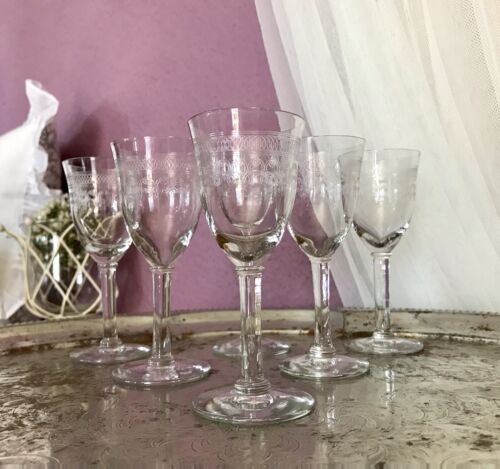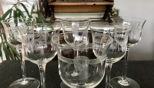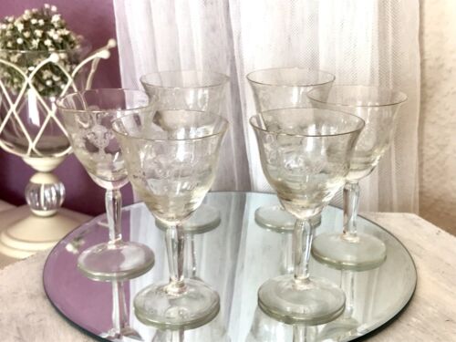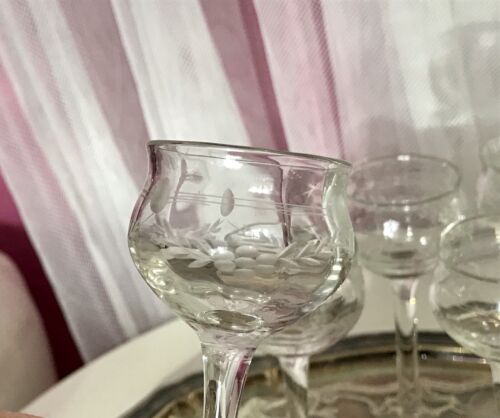 Antik 6x Weingläser Glas So Schön! guillochiert? geätzt?