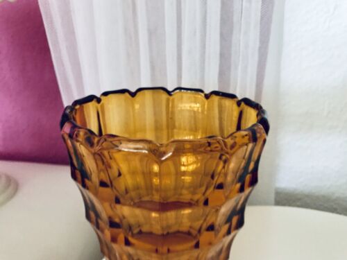 Antik Art Déco 1 Vase Glasvase Pressglas Bernstein Gelb Amber Glas