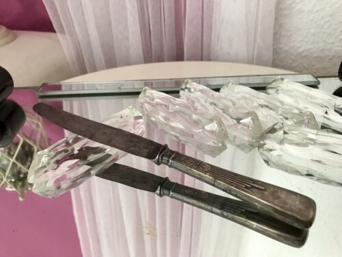 Antik Alt 6 Messerbänkchen Kristallglas Glas