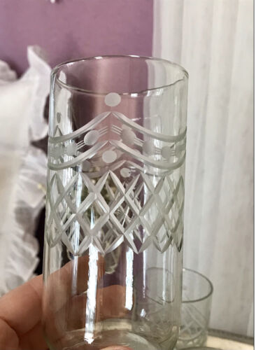 Antik 5x Becher Trinkbecher Gläser Schliff Glas Wow Art Déco wunderschön!