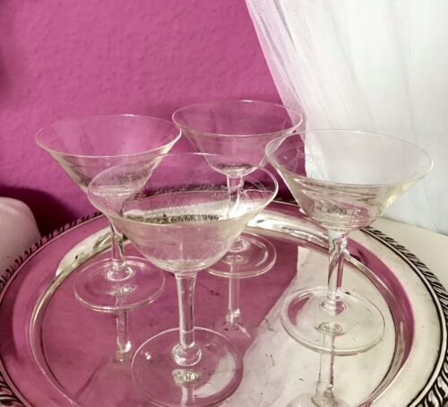 Antik alt 4x Jugendstil Glas Südweingläser Schaumweingläser? geätzt?