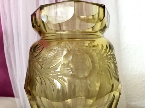 Antik Art Déco Glas Vase Glasvase Amber Bernstein Gelb Edel Schliff Haida?