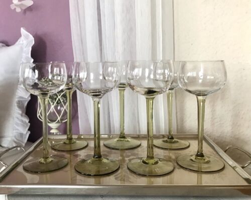Antik 6x Art Déco Stengelglas gelb & grün Stängelstiel Weingläser