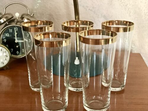 Antik Art Déco 5 hohe Wassergläser Gläser Goldrand EDEL Wunderschön