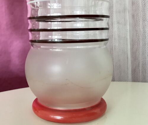 Antik alt Vase Glasvase Art Déco teils satiniert bunte Ränder markant 30er-50er