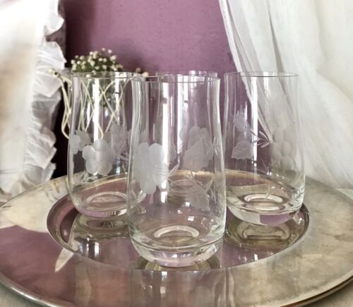 Antik Art Déco 5x Becher Trinkbecher Wassergläser Saft Gläser Blumen-Schliff