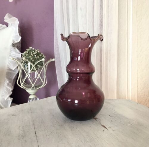 Antik Alt Vase Blumenvase Glasvase Goldrand Amethyst
