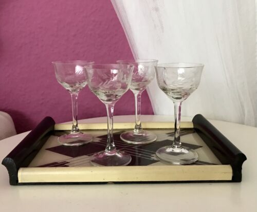 Antik Art Déco 4x Likörgläser Gläser gerippt geschliffen EDEL Glas & Tablett