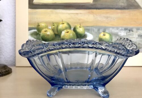 Antik Art Déco Brockwitz Bamberg Barock Schale 3füssig Pressglas Glas Blau