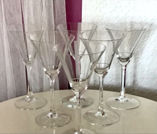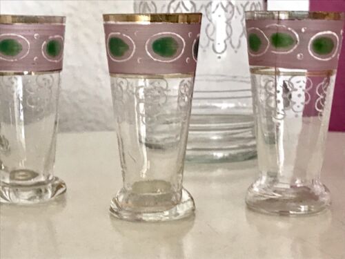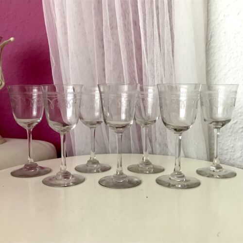 Antik alt Gläser Set 7 x Jugendstil Glas Likörgläser qulilochiert Wundervoll!