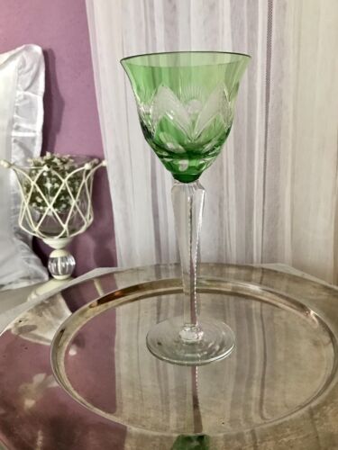 Antik Alt Edel Weinglas Römer Kristallglas geschliffen grün Überfangglas Glas