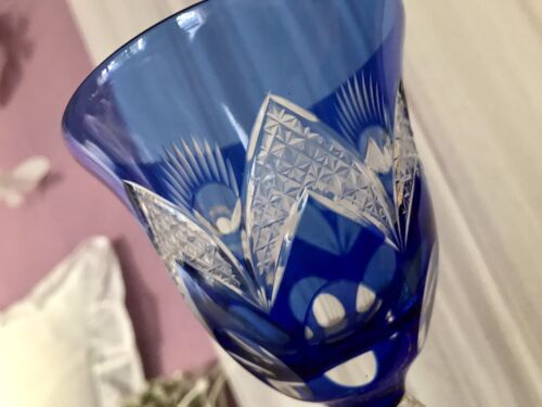 Antik Alt Edel Weinglas Römer Kristallglas geschliffen Blau Überfangglas Glas