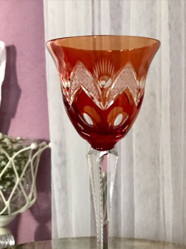 Antik Alt Edel Weinglas Römer Kristallglas geschliffen rot Überfangglas Glas