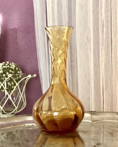 Antik alt Vase Glasvase Bernstein Gelb Amber optisch gerippt Art Déco