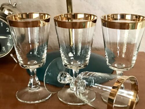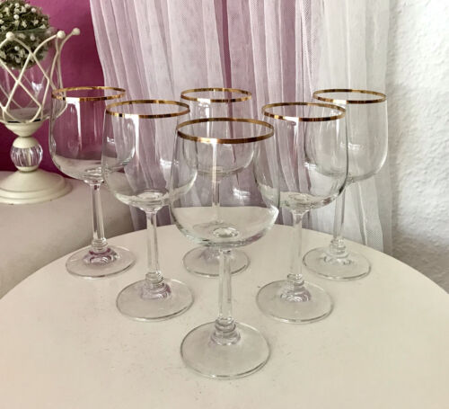 Antik Art Déco 6 Gläser Weingläser Glas wundervoll Stiel Goldrand