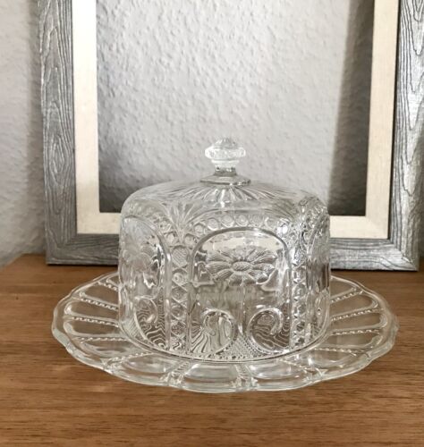 Antik Art Déco Glas GROß Pressglas Käseglocke Butterglocke Brockwitz Marquerite