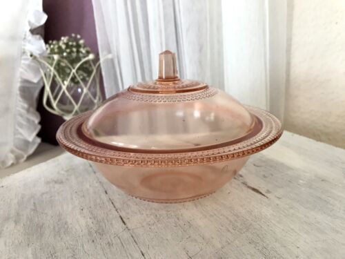 Antik Art Déco Brockwitz Dose Deckelschale Tauperle Rosalin Rosa Pressglas Rar