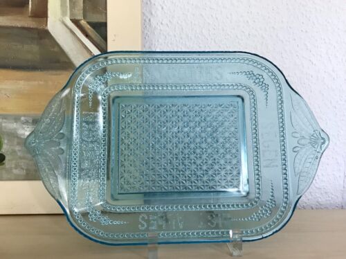 Antik Jugendstil Pressglas groß Schale Platte blau Villeroy&Boch An Gottes Segen
