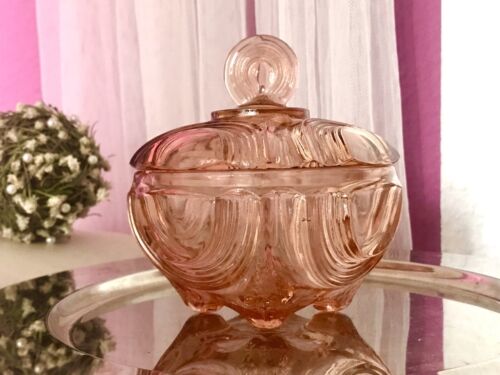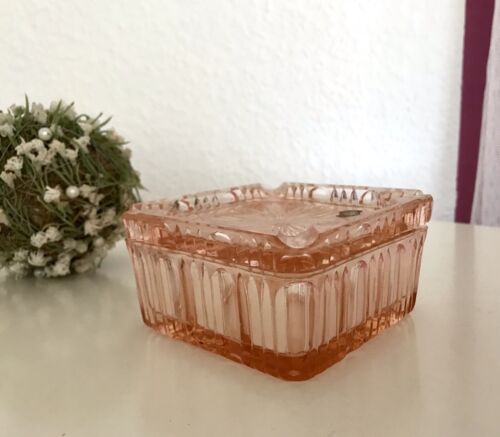 Antik Art Déco Dose Deckeldose Rosalin Rosa Pressglas Zigarettendose & Ascher