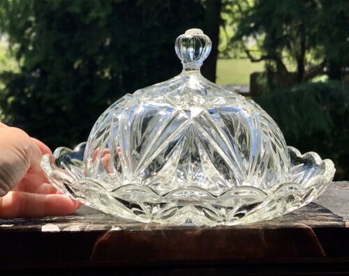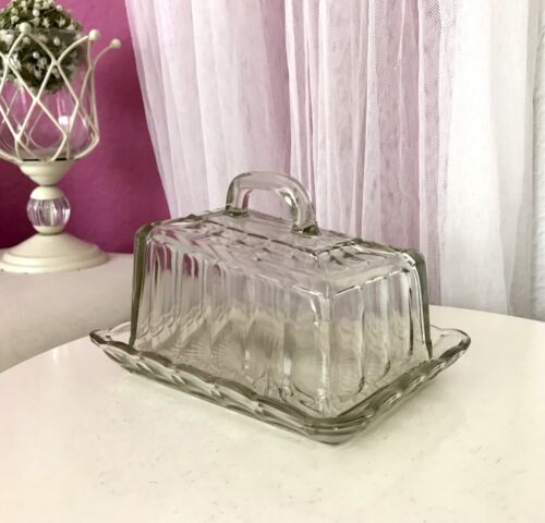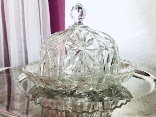 Antik Art Déco Glas Pressglas Butterglocke Butterdose Wunderschön!
