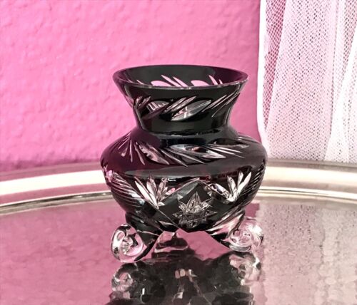 Antik Art Déco dunkel Rubin Rot Schliff Überfangglas Vase Glasvase ästhetisch