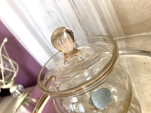 Antik Art Déco Dose Honigdose Deckeldose Glas zart Gelb Lachs Edel Schliff