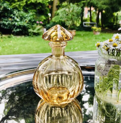 Antik Art Déco Glas Karaffe Dekanter Flächenschliff wundervoll! Bernstein Gelb