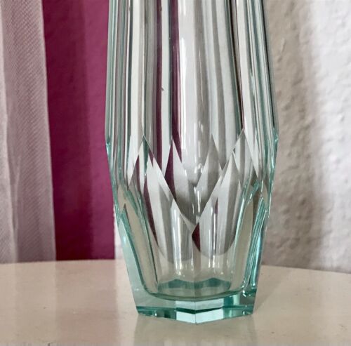 Antik Art Déco Glasvase türkis blau Kristallglas EDEL Moser? Flächenschliff