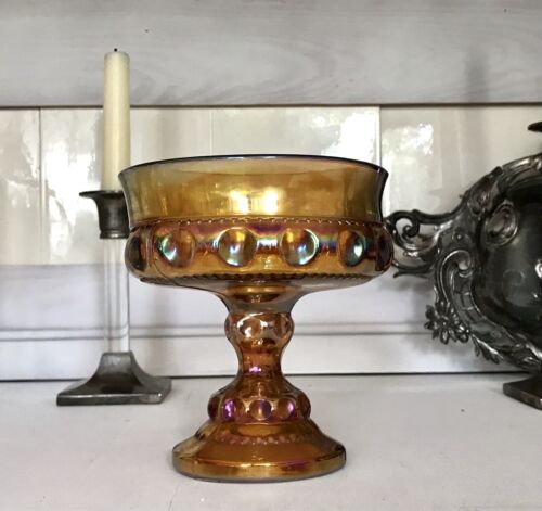 Antik Art Déco Bernstein Farbe gelb Karnival Glas Pressglas Fußschale Bonboniere