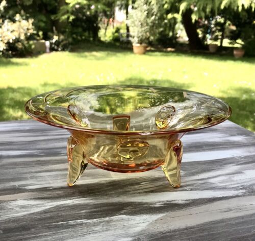 Antik Art Déco Edel Designer Schale Glasschale Bernstein Farbe Gelb Glas Kunst