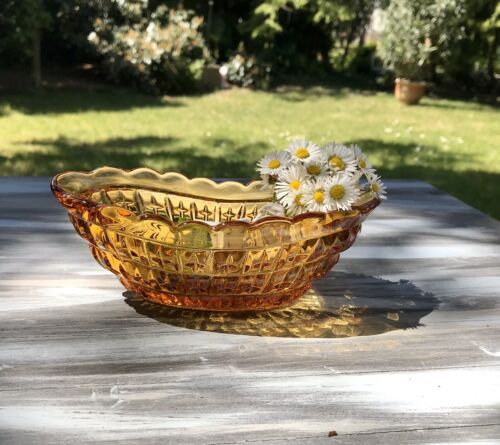 Antik Art Déco Bernstein Farbe gelb Karnival Glas Pressglas Schale Jardiniere