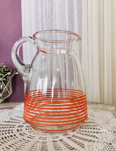 Antik Art Déco Abriss Glas Krug Glaskrug Kanne Glas rot Dots&Stripes Email
