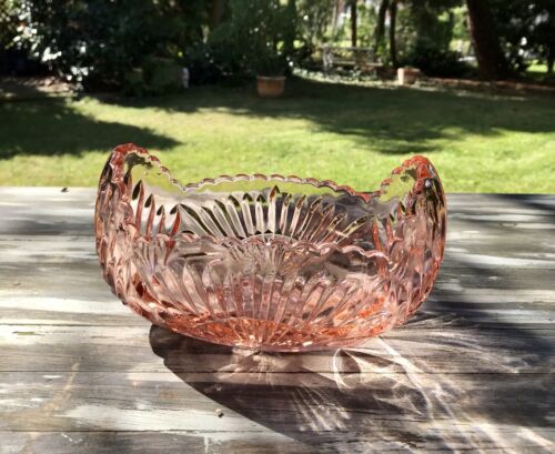 Antik Art Déco Jardiniere Rosalin Rosa Schale Pressglas Glasschale Glas