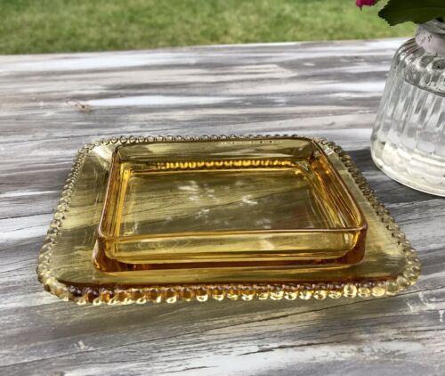 Antik Art Déco Bernstein gelb Pressglas Butterschale Butterdose Glas Unterteil
