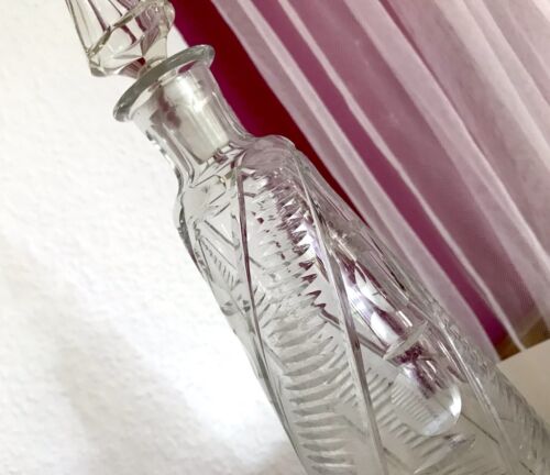 Antik Art Déco EDEL Glaskaraffe Karaffe Dekanter Bleikristall Schliff